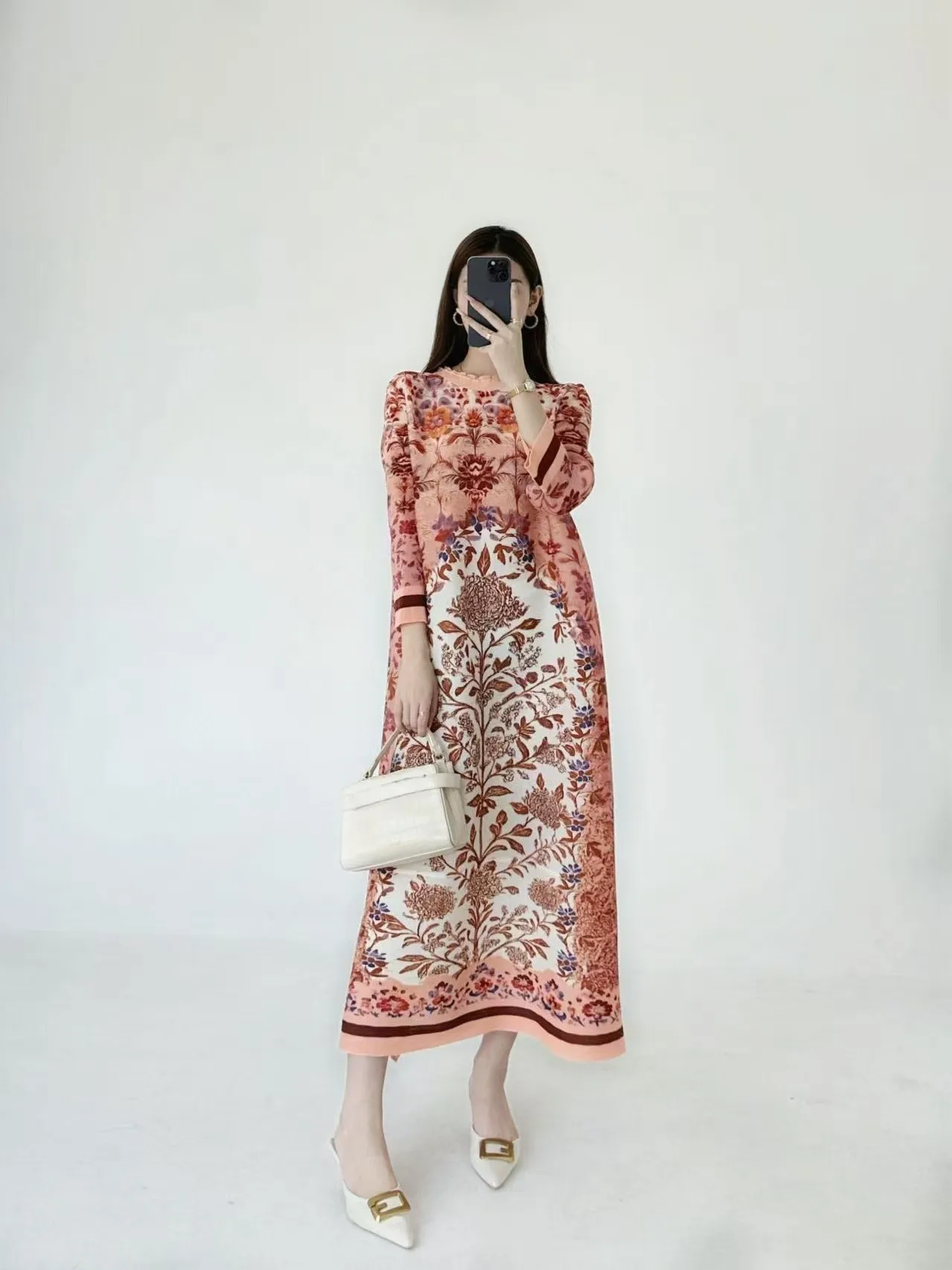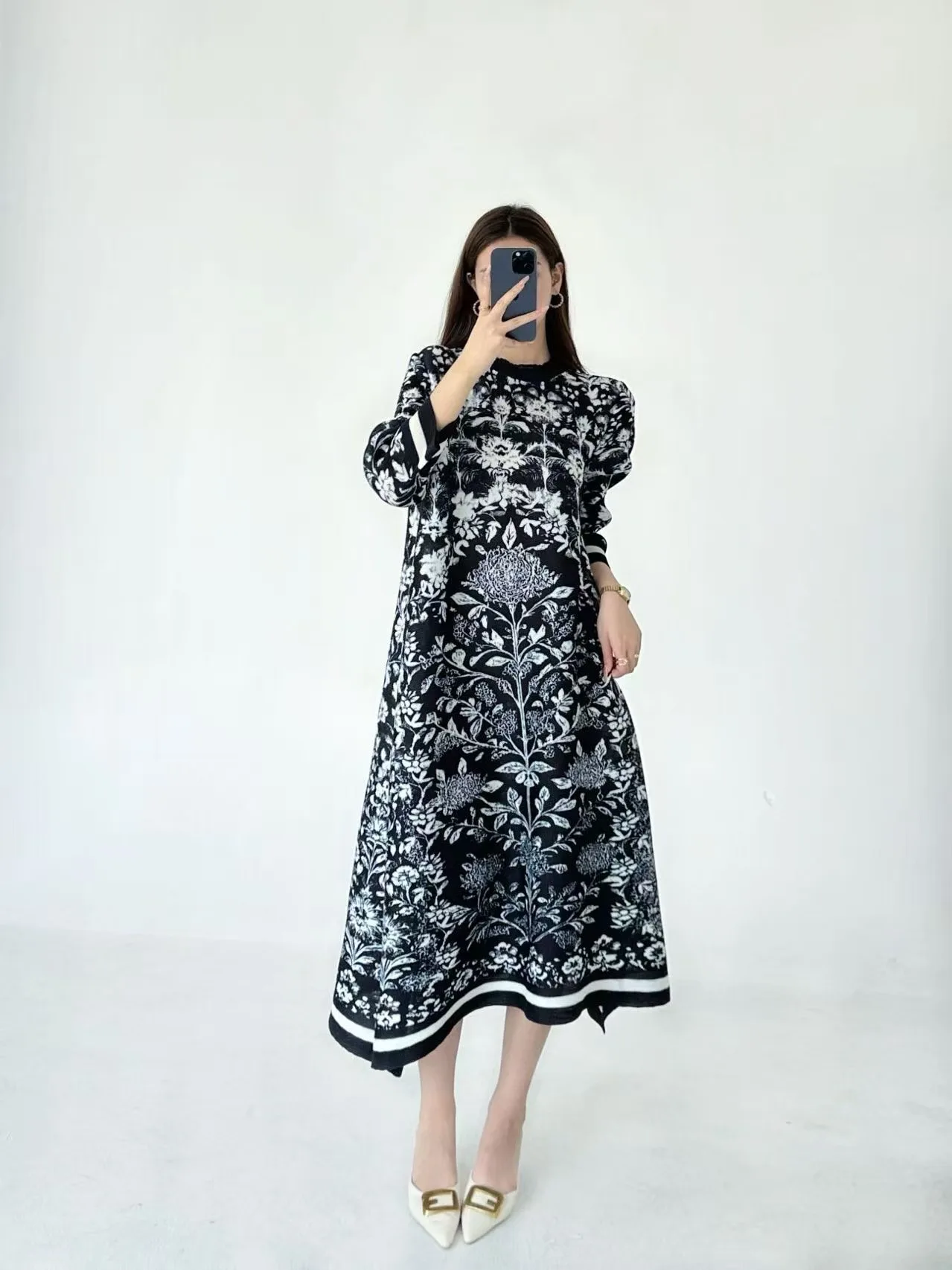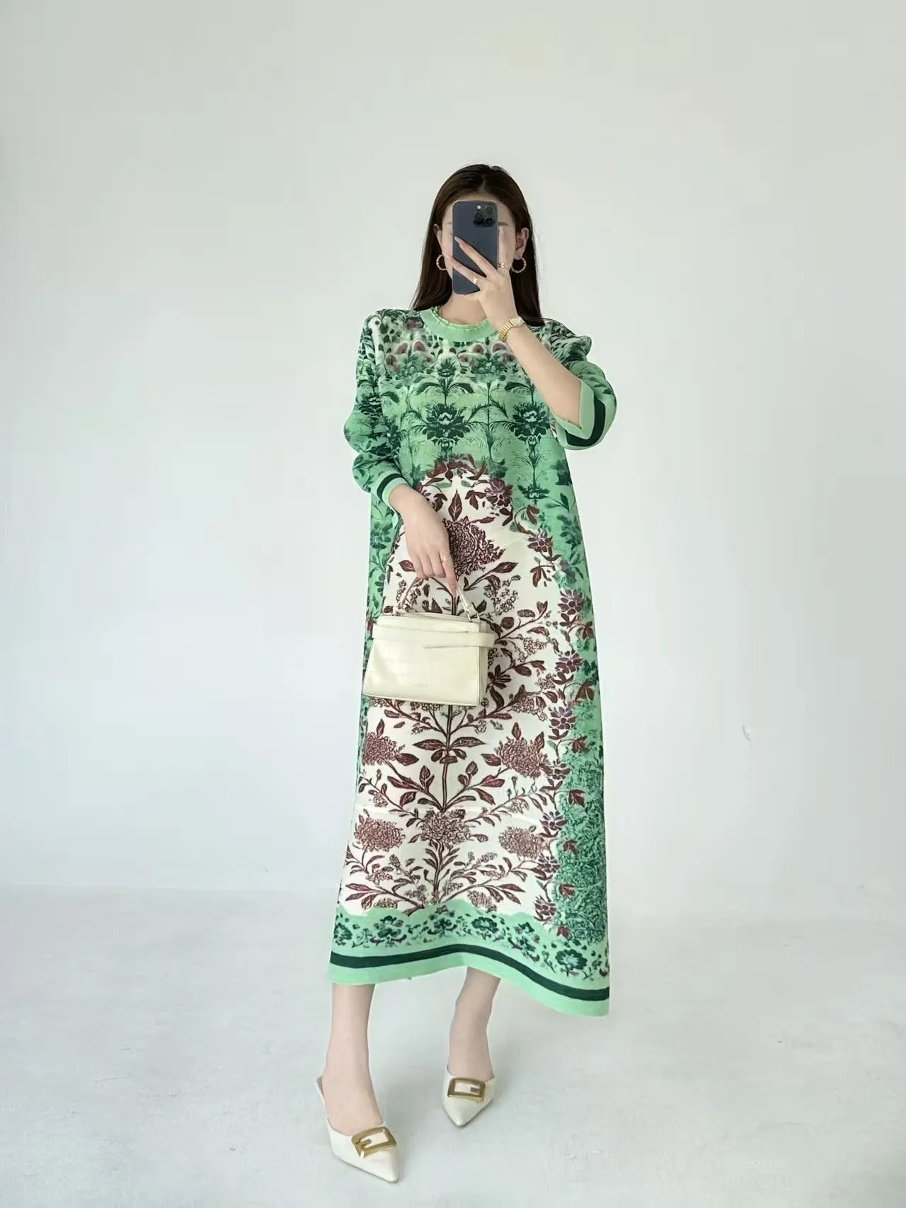2025 New Women Oversized Green Floral Dress Long Sleeve Maxi Length Casual Loose Dress Plus Size Available